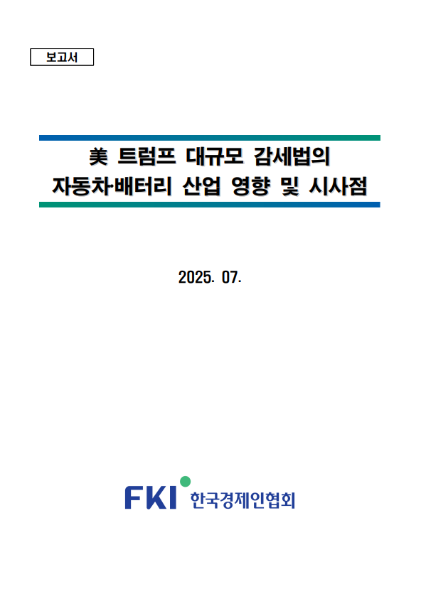 美 트럼프 대규모 감세법의 자동차·배터리 산업 영향 및 시사점