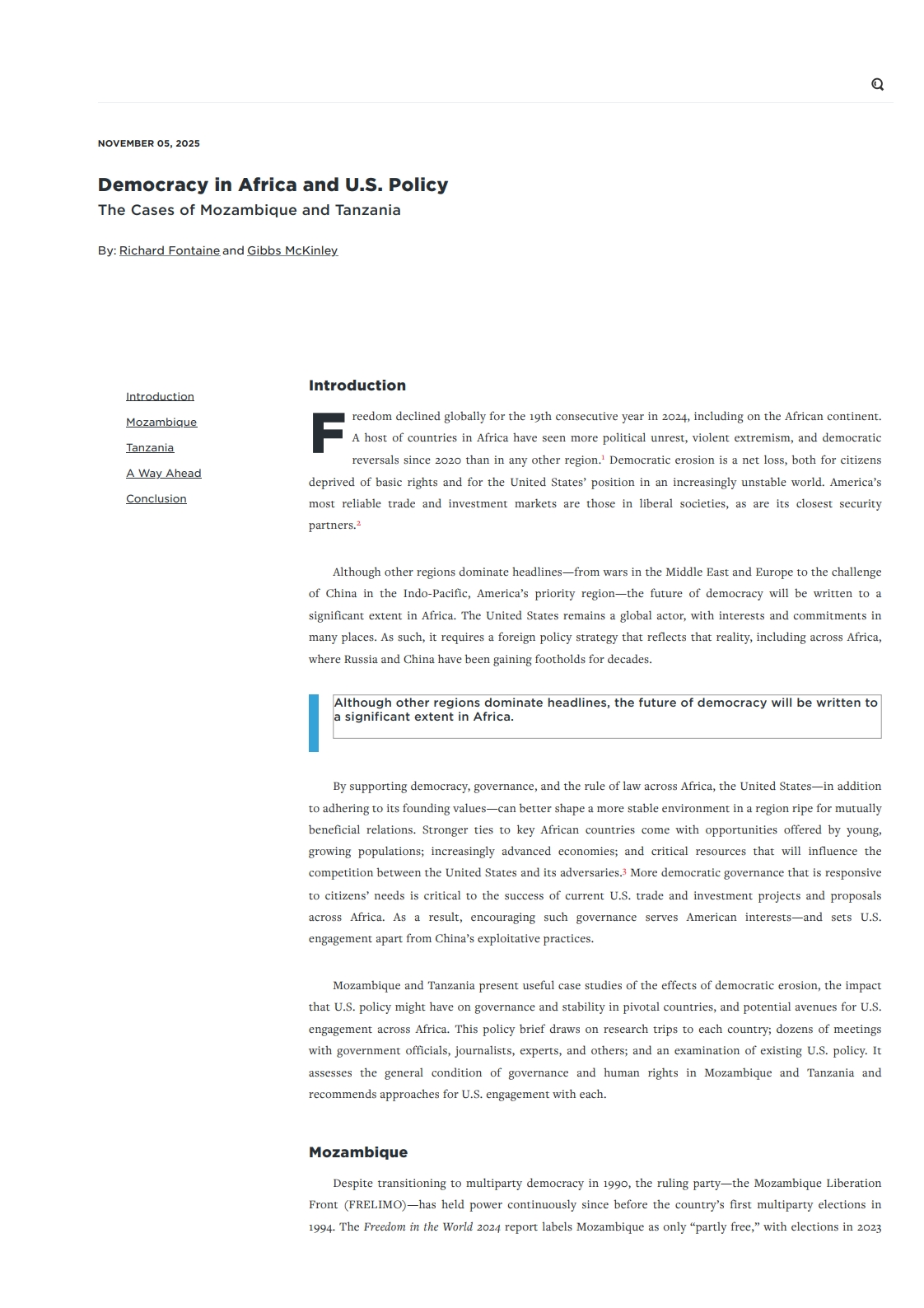 (아프리카의 민주주의와 미국의 정책: 모잠비크와 탄자니아 사례)