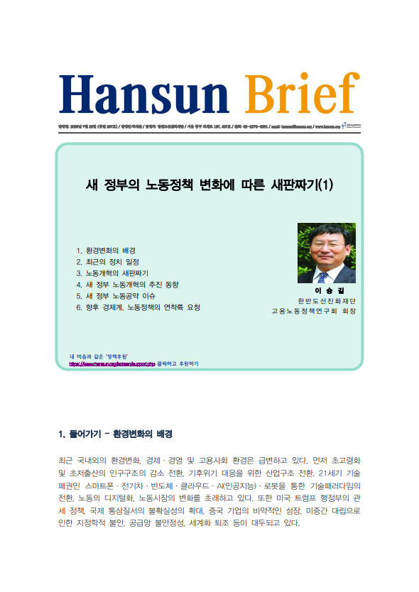 새 정부의 노동정책 변화에 따른 새판짜기. 1