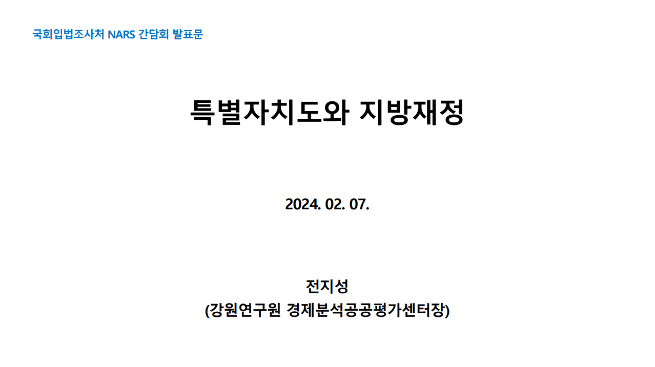 특별자치도와 지방재정 : 국회입법조사처 NARS 간담회 발표문