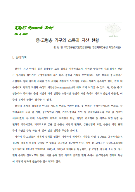〈표 2〉 중ㆍ고령층 가구의 소득 및 자산 현황 8