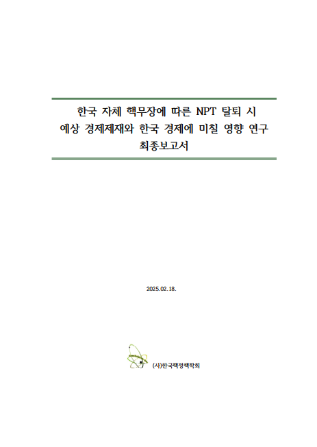 한국 자체 핵무장에 따른 NPT 탈퇴 시 예상되는 경제제재와 한국 경제에 미칠 영향 연구 최종보고서