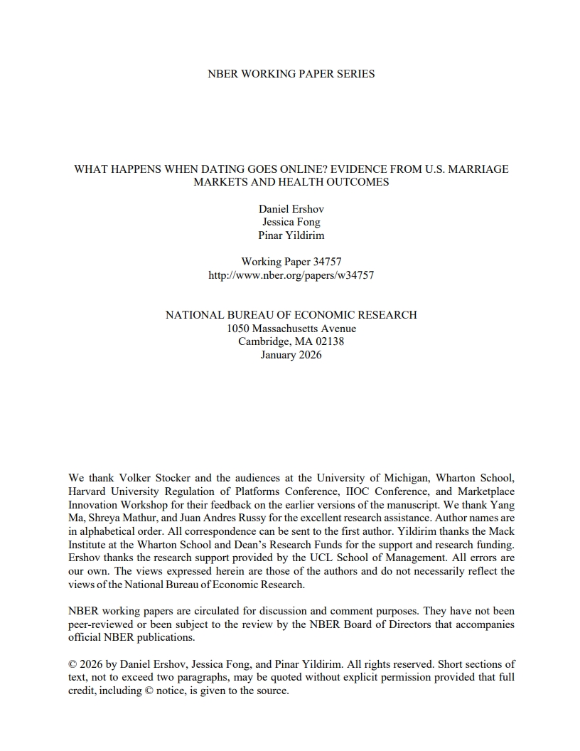 (온라인 데이팅 확산의 영향: 미국 결혼 시장과 건강 결과에 대한 실증 분석)