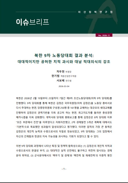 북한 9차 노동당대회 결과 분석: 대대적이지만 공허한 치적 과시와 대남 적대의식의 강조