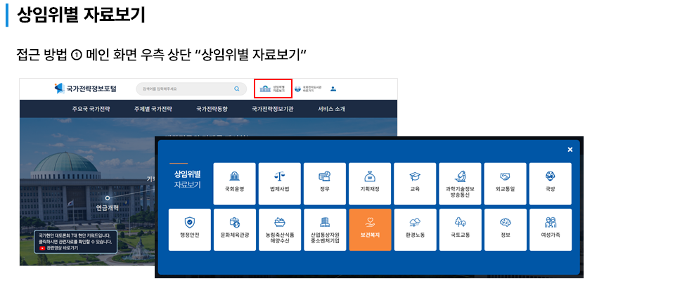 국가전략정보포털은 상임위별 자료보기 및 세미나 동영상 서비스를 시작합니다.