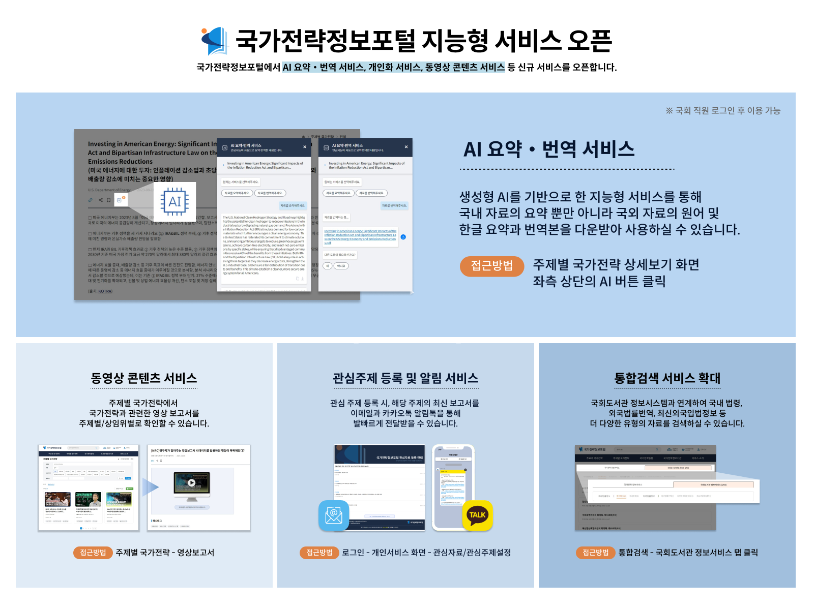 국가전략정보포털 AI 요약 · 번역 서비스 등 지능형 서비스 오픈