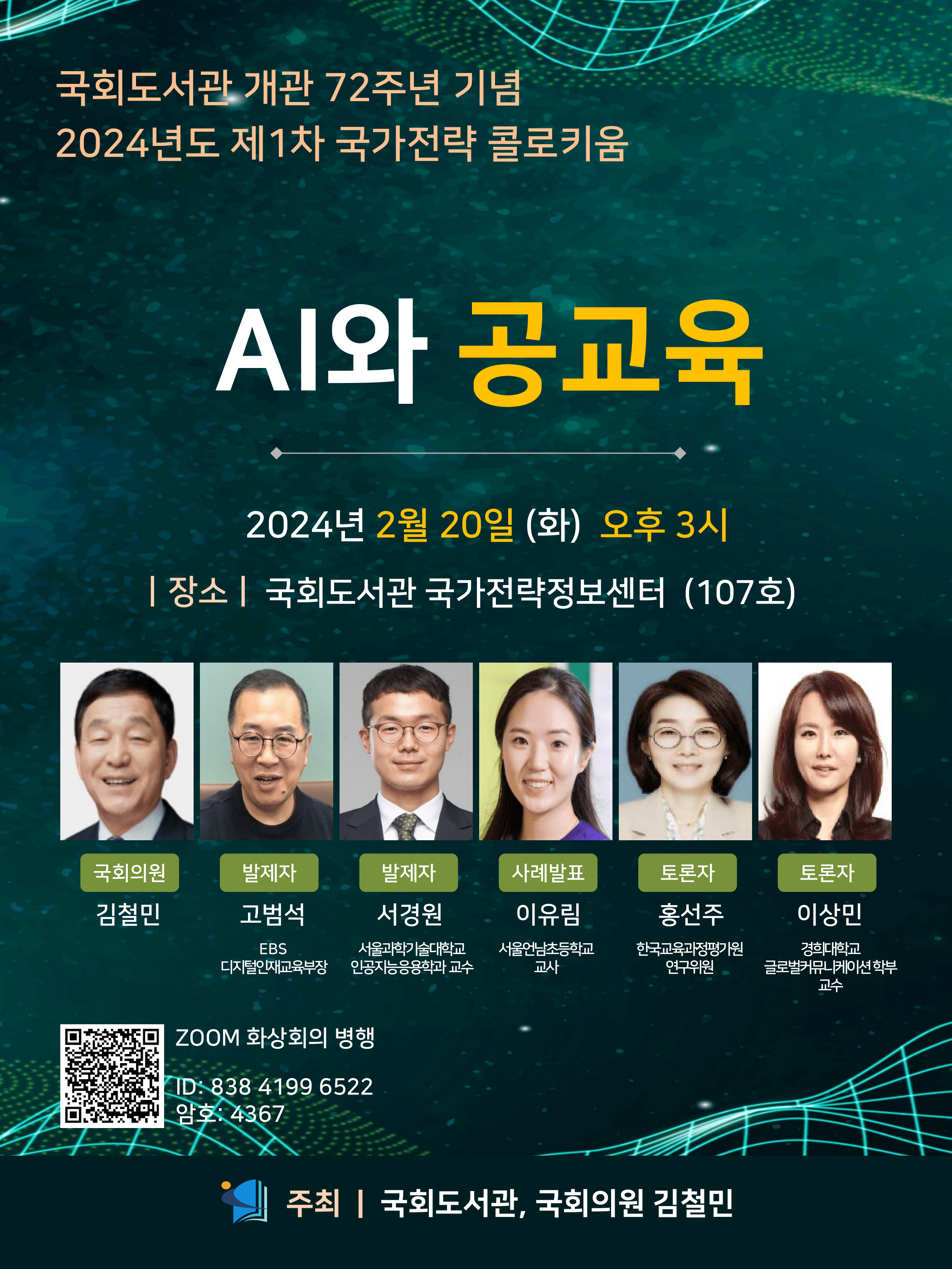 국회도서관,「AI와 공교육」을 주제로 [국회도서관 개관 72주년 기념 2024년도 제1차 국가전략 콜로키움] 개최