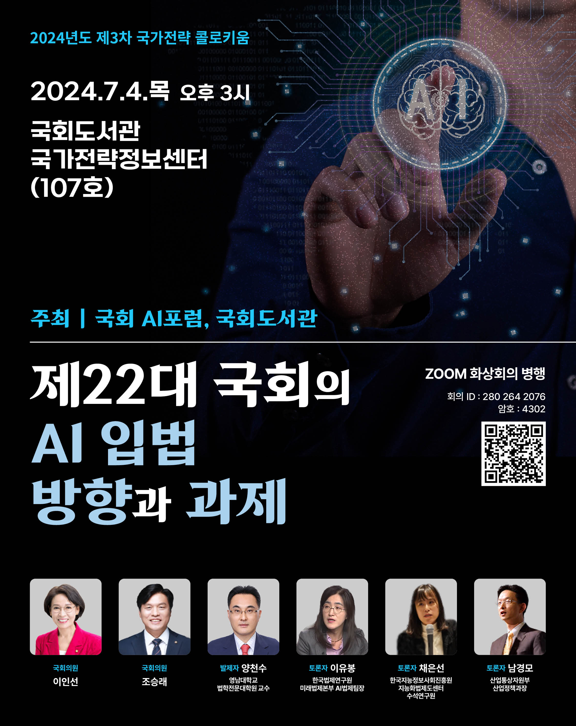 ※ 국회도서관은 2024년도 제3차 국가전략 콜로키움을 '22대 국회의 AI 입법 방향과 과제'를 주제로 개최합니다.