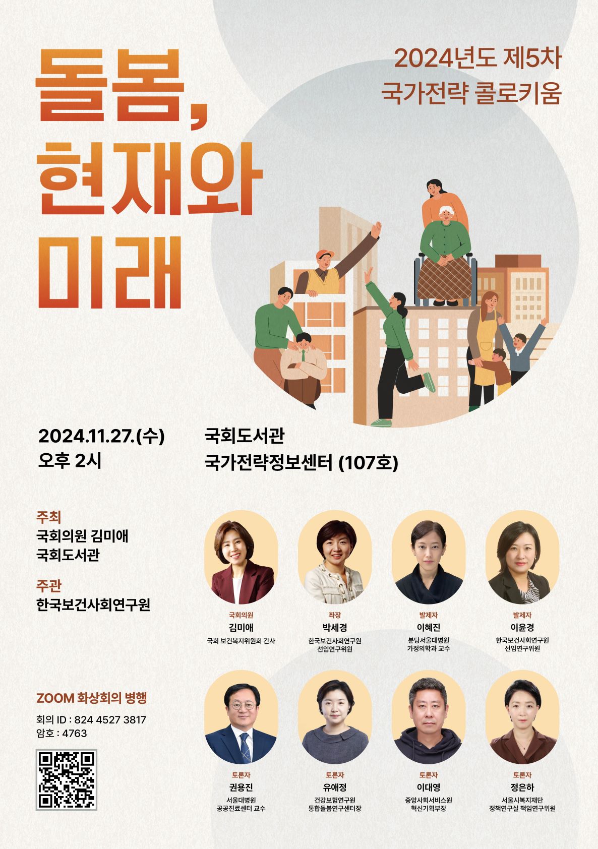 ※ 국회도서관은 2024년도 제5차 국가전략 콜로키움을 '돌봄, 현재와 미래'를 주제로 개최합니다.