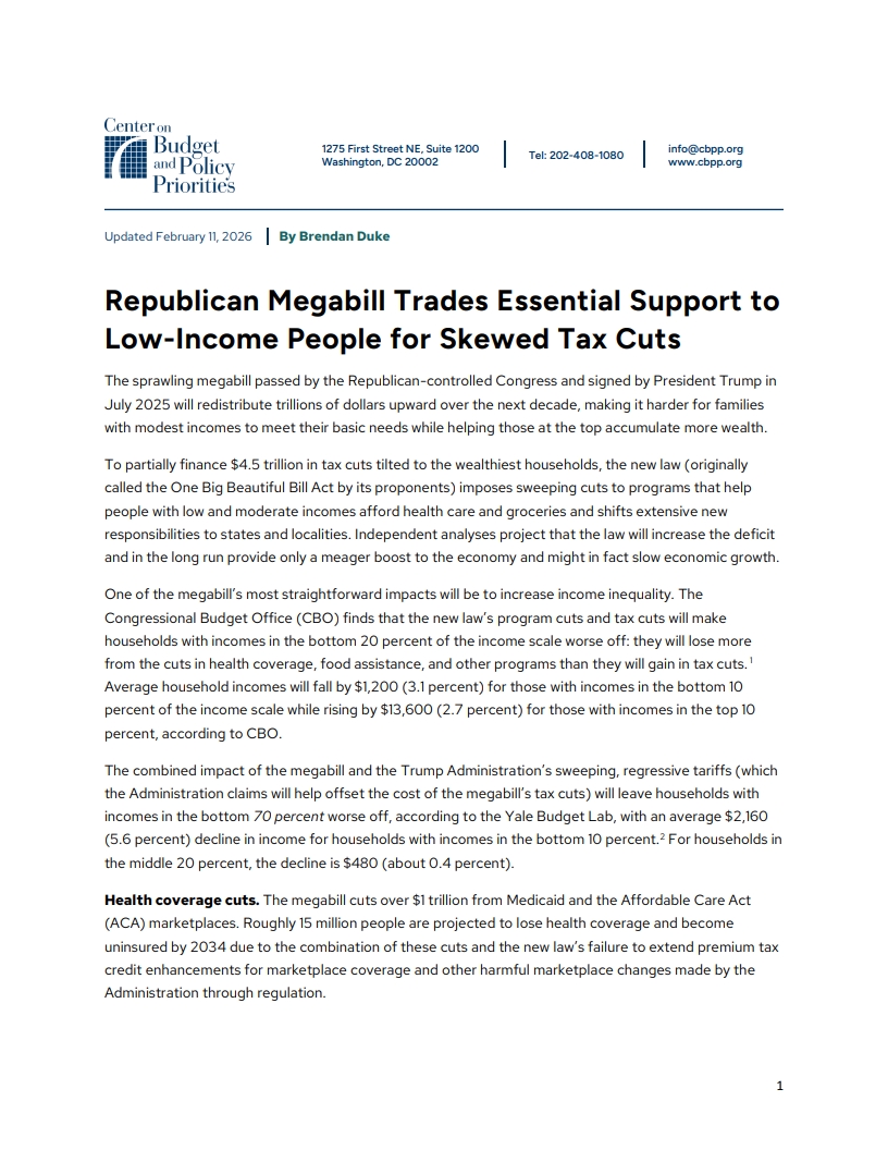 Republican megabill trades essential support to low‑income people for skewed tax cuts