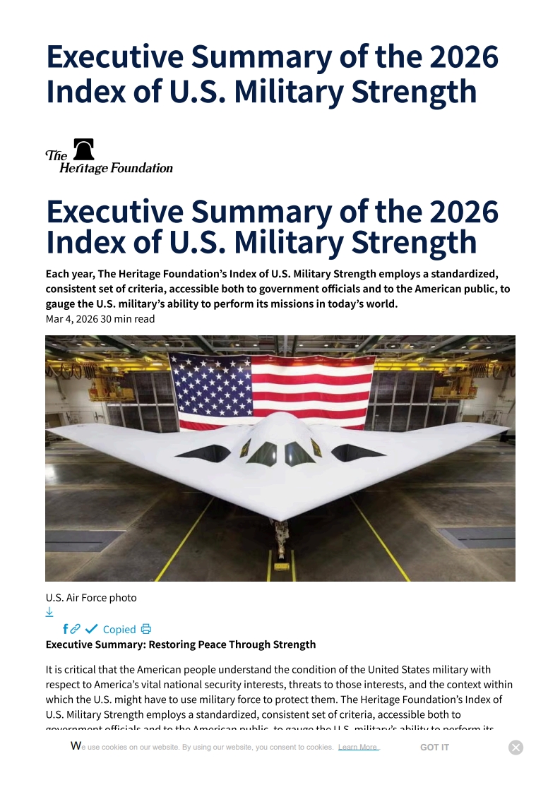 Executive Summary of the 2026 Index of U.S. Military Strength (2026.03.04.) / Heritage Foundation