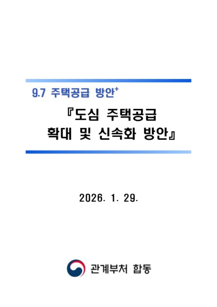 □ 구윤철 부총리 겸 재정경제부 장관은 1.29일(목) 10:30 정부서울청사에서 「주택공급촉진 관계장관회의」를 주재하여 「도심 주택공급 확대 및 신속화 방안」을 논의함