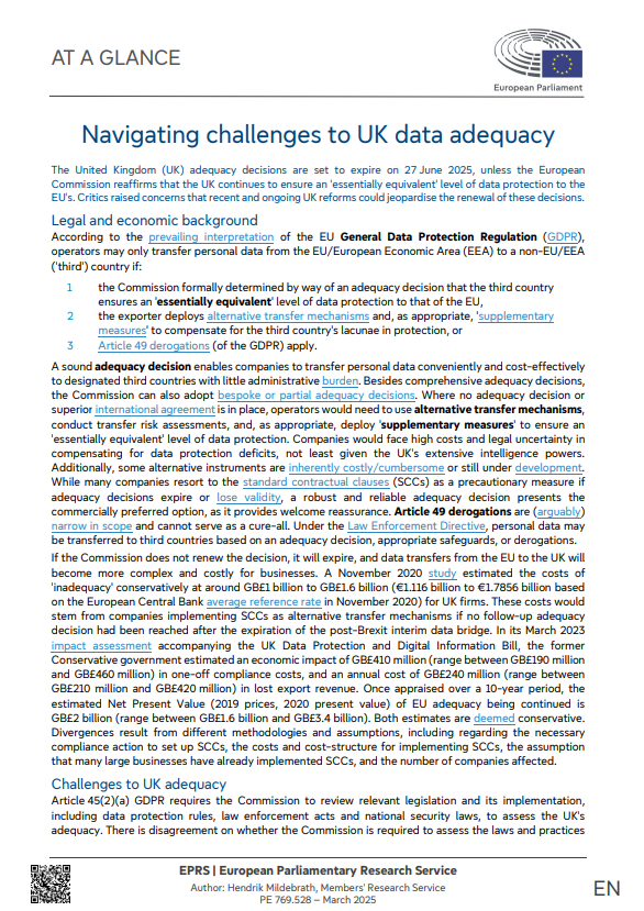 Legal and economic background Challenges to UK adequacy