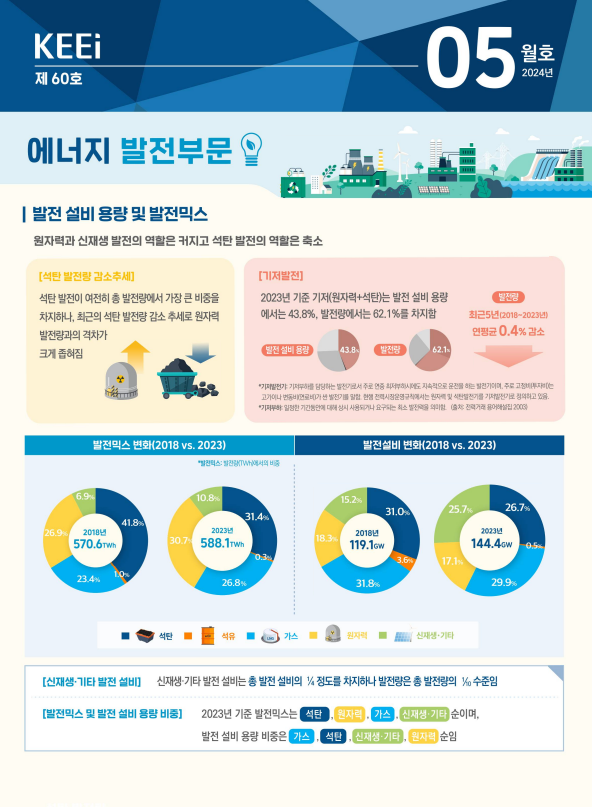 에너지 발전부문 : 발전 설비 용량 및 발전믹스