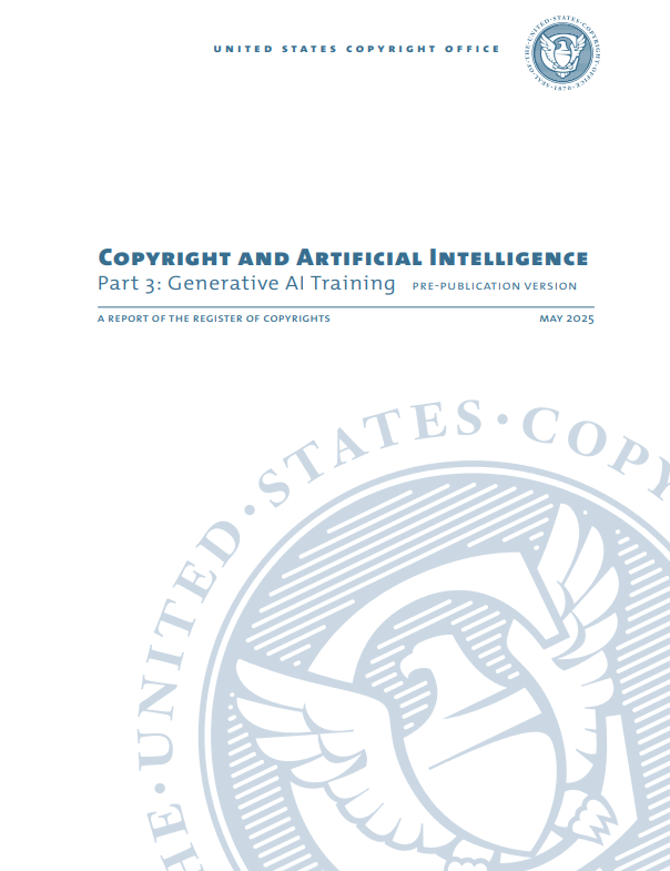 ㅇ 2025년 5월 「Copyright and Artificial Intelligence-Part 3:Generative AI Training」보고서를 통해 발표함