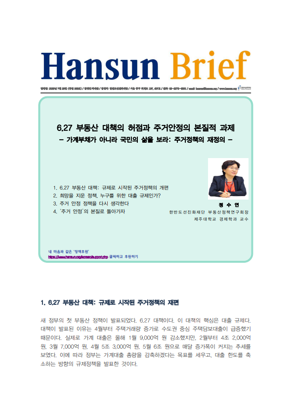 6.27 부동산 대책의 허점과 주거안정의 본질적 과제 : 가계부채가 아니라 국민의 삶을 보라 : 주거정책의 재정의