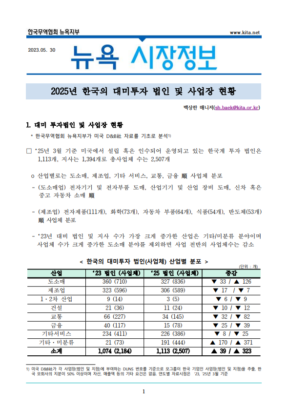 (2025년) 한국의 대미투자 법인 및 사업장 현황