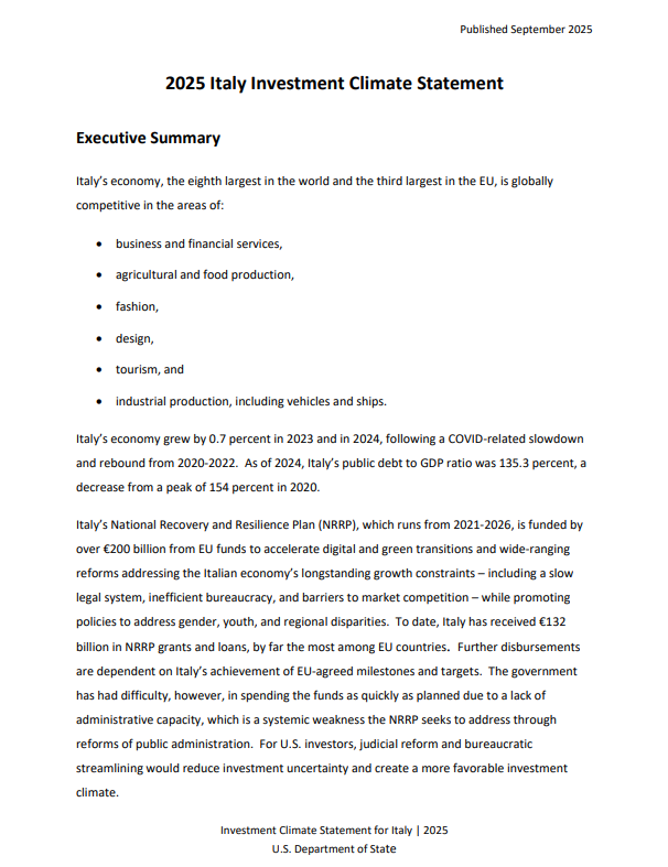 Section 1. Openness to, and Restrictions upon, Foreign Investment