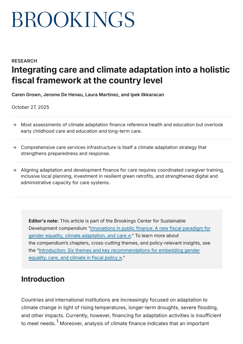 Integrating care and climate adaptation into a holistic fiscal framework at the country level