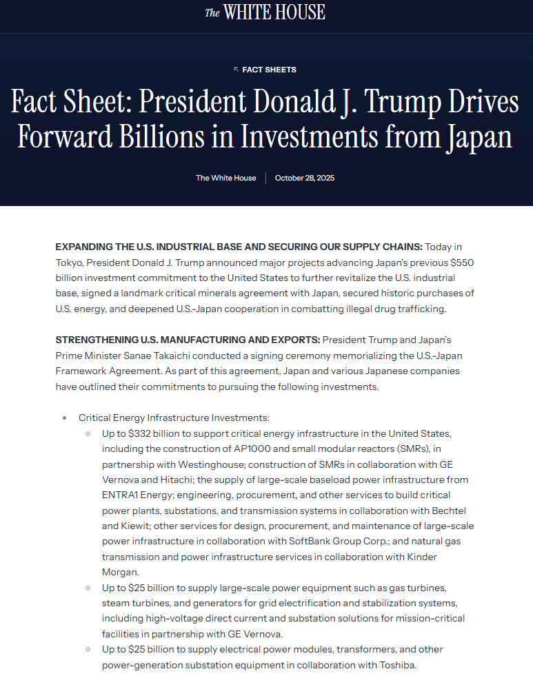 팩트시트: 트럼프 대통령, 일본으로부터 수십억 달러 투자 유치