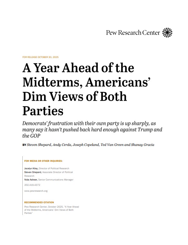 A Year Ahead of the Midterms, Americans’ Dim Views of Both Parties