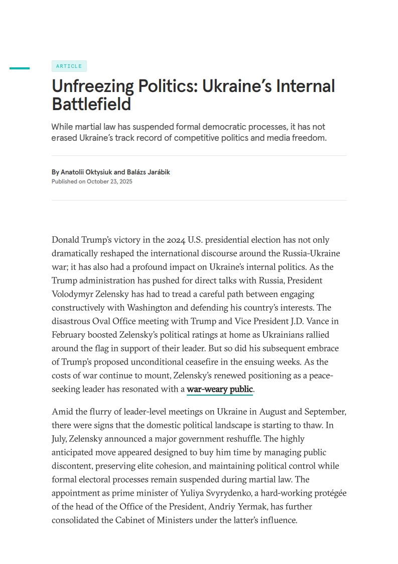 Unfreezing Politics: Ukraine’s Internal Battlefield