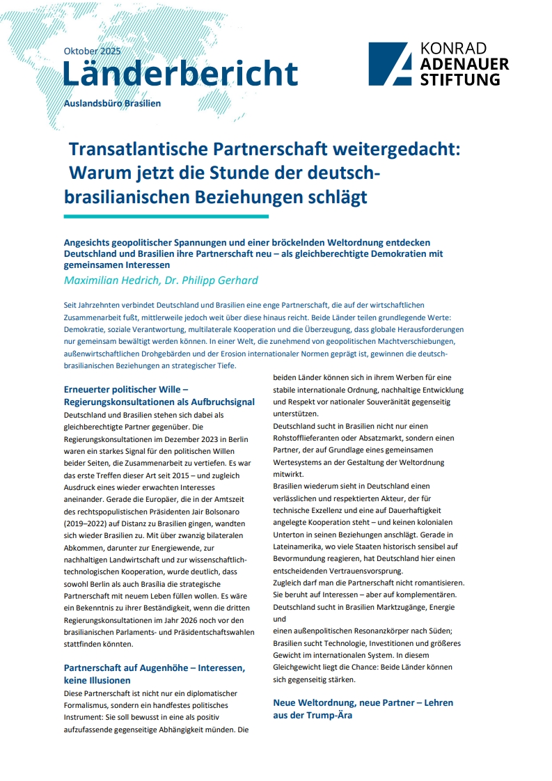 Transatlantische Partnerschaft weitergedacht: Warum jetzt die Stunde der deutschbrasilianischen Beziehungen schlägt