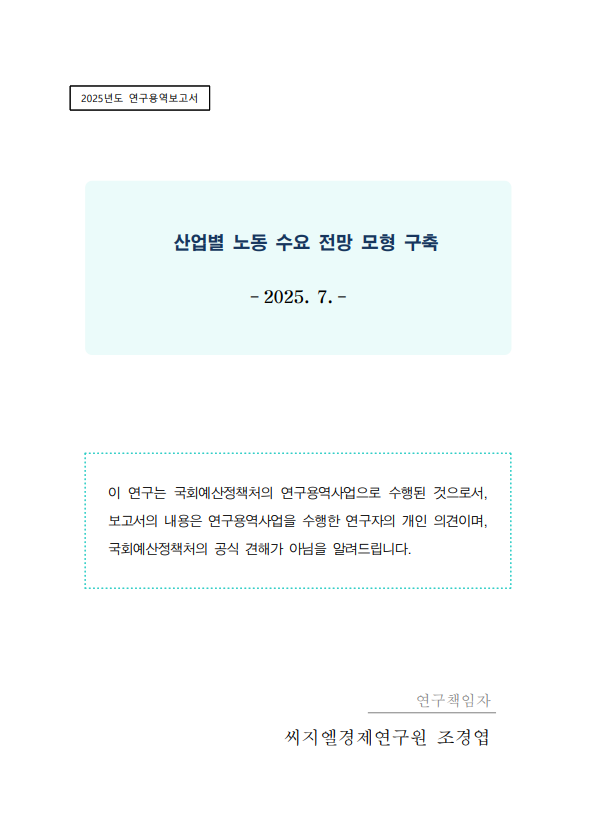 산업별 노동 수요 전망 모형 구축 : 2025년도 연구용역보고서