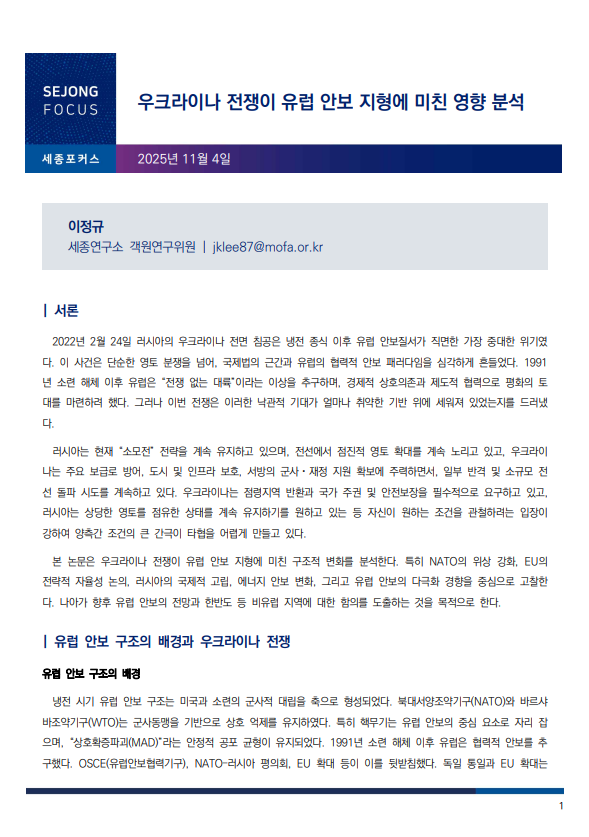 우크라이나 전쟁이 유럽 안보 지형에 미친 영향 분석
