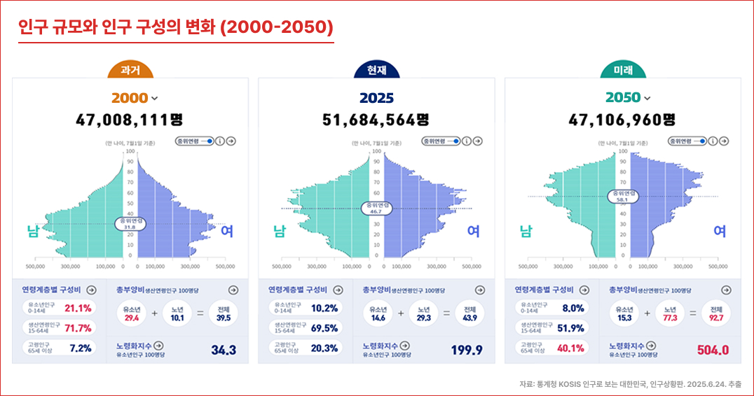 2. 통계청 KOSIS 인구로 보는 대한민국, 인구상황판. 2025.6.24. 추출