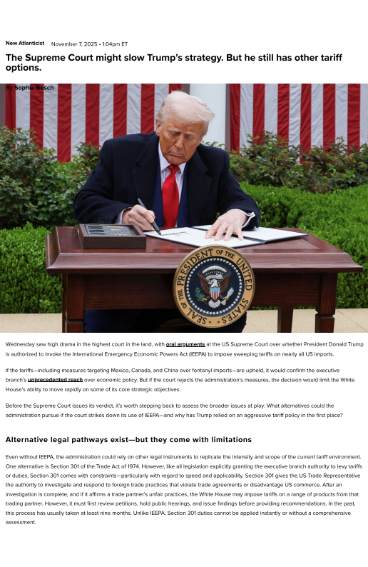 □ 미국 대법원이 트럼프 행정부의 「국제경제비상권법(IEEPA)」 적용 여부를 심리하면서, 행정부의 광범위한 관세 부과 권한에 제동이 걸릴 가능성이 제기됨