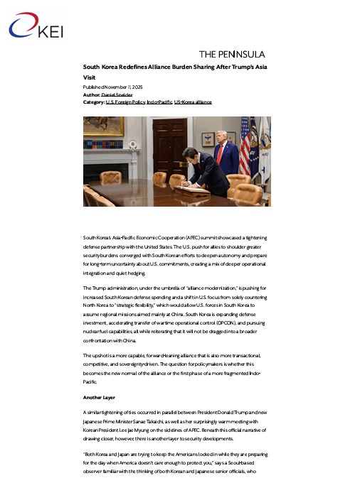 □ 트럼프 행정부의 동맹 부담 분담 요구와 한국의 전략적 불확실성 대응이 맞물리며 한미 동맹은 통합 강화와 자율성 확대가 병행되는 구조로 변화함
