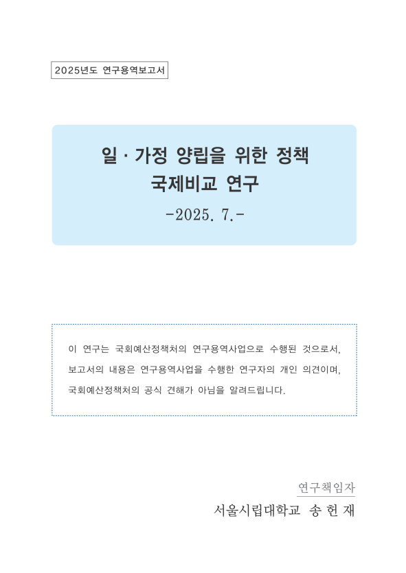 일·가정 양립을 위한 정책 국제비교 연구 : 2025년도 연구용역보고서