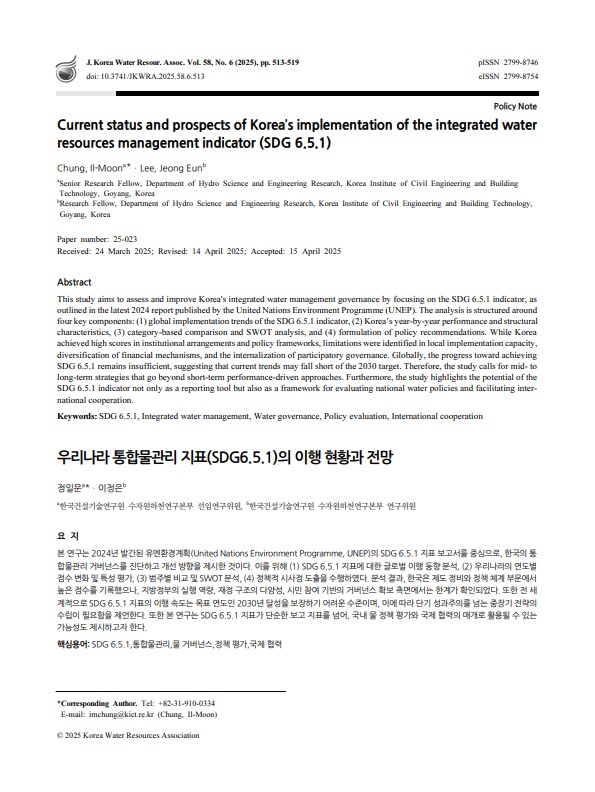 우리나라 통합물관리 지표(SDG6.5.1)의 이행 현황과 전망