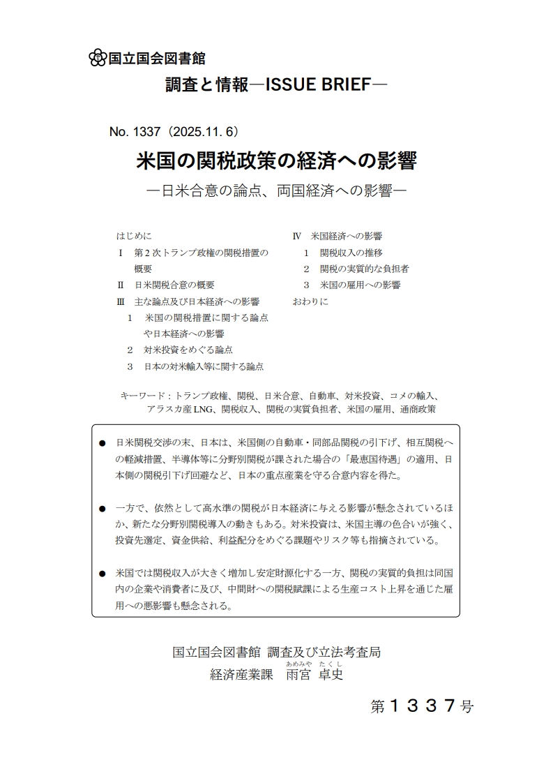 1 米国の関税措置に関する論点や日本経済への影響 3