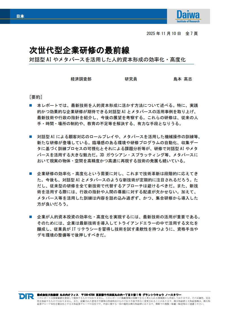 次世代型企業研修の最前線: 対話型 AI やメタバースを活用した人的資本形成の効率化・高度化