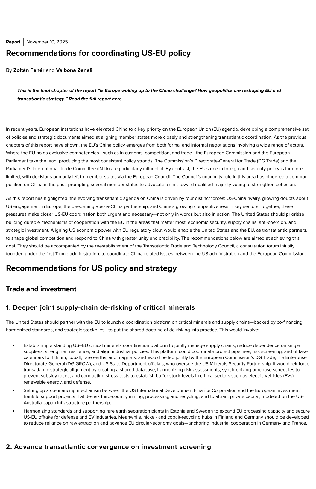 Recommendations for coordinating US-EU policy