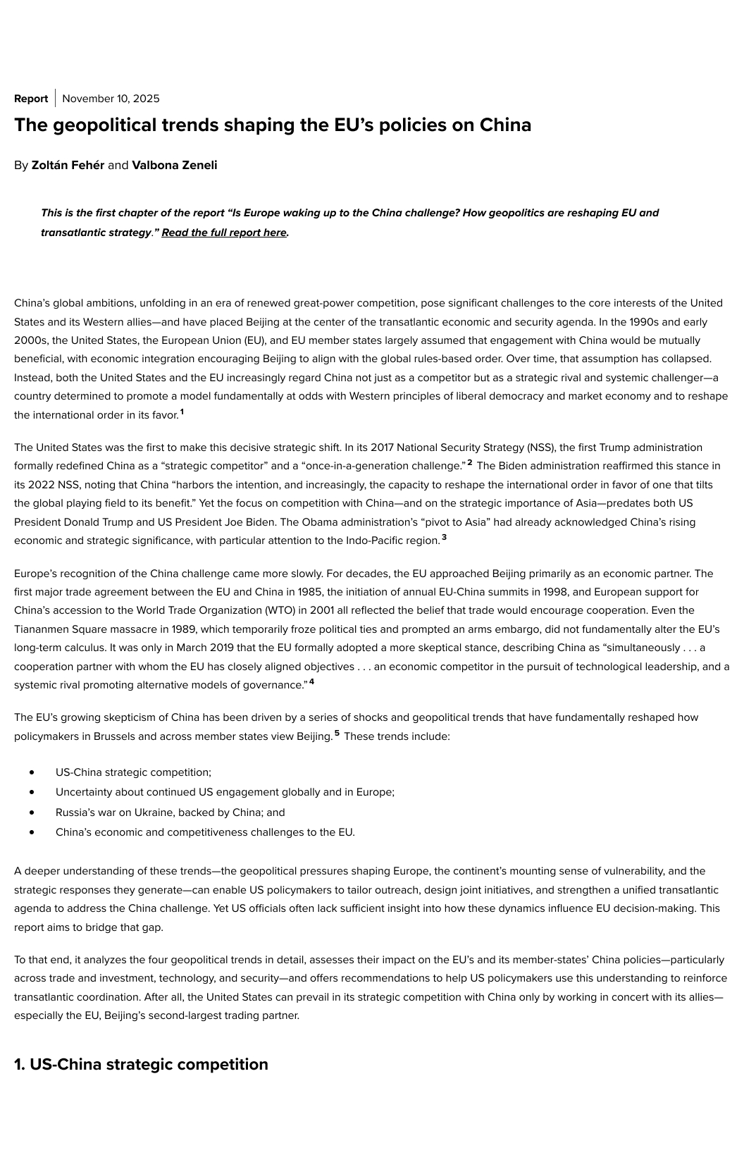 (EU의 대중국 정책을 형성하는 지정학적 트렌드)