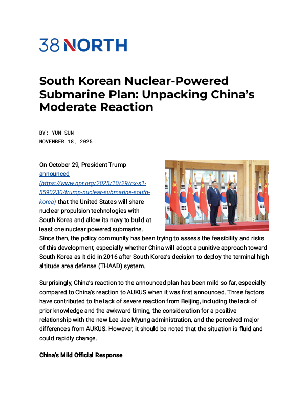 South Korean Nuclear-Powered Submarine Plan: Unpacking China’s Moderate Reaction