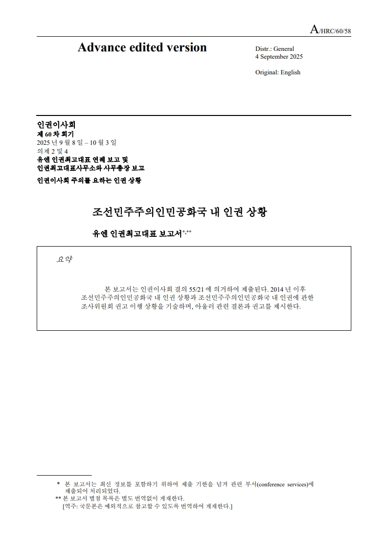 조선민주주의인민공화국 내 인권 상황: 유엔 인권최고대표 보고서