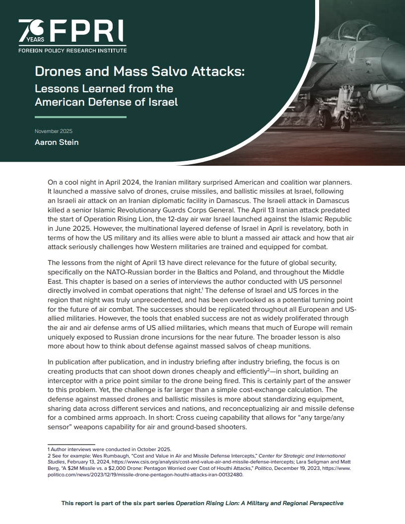 Drones and mass salvo attacks lessons learned from the American defense of Israel