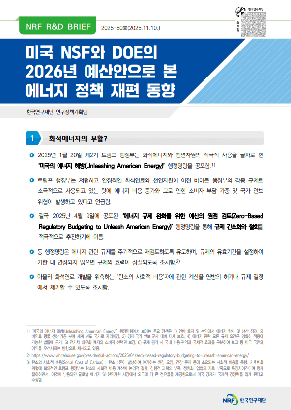 미국 NSF와 DOE의 2026년 예산안으로 본 에너지 정책 재편 동향