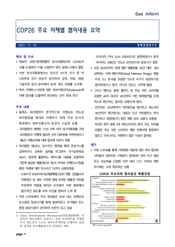 COP26 주요 의제별 협의내용 요약