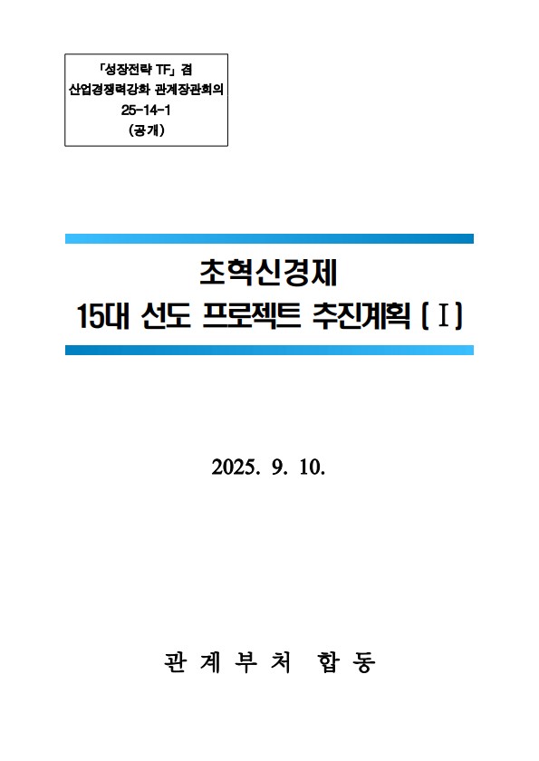 ▶ 초혁신경제 15대 선도프로젝트 추진계획. Ⅱ (2025.10.20.) / 관계부처 합동