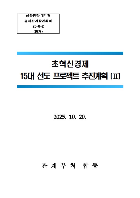 ▶ 초혁신경제 15대 선도프로젝트 추진계획. Ⅰ (2025.09.10.) / 관계부처 합동