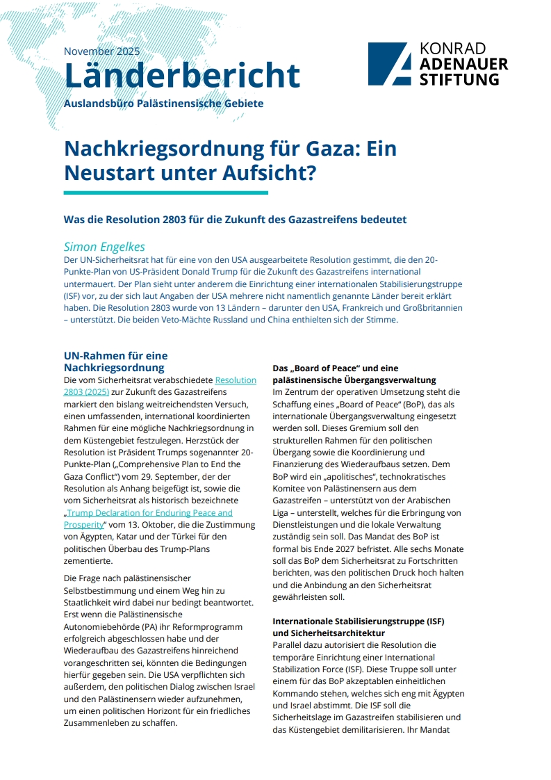 가자지구 전후 질서: 감독 하의 새로운 출발?