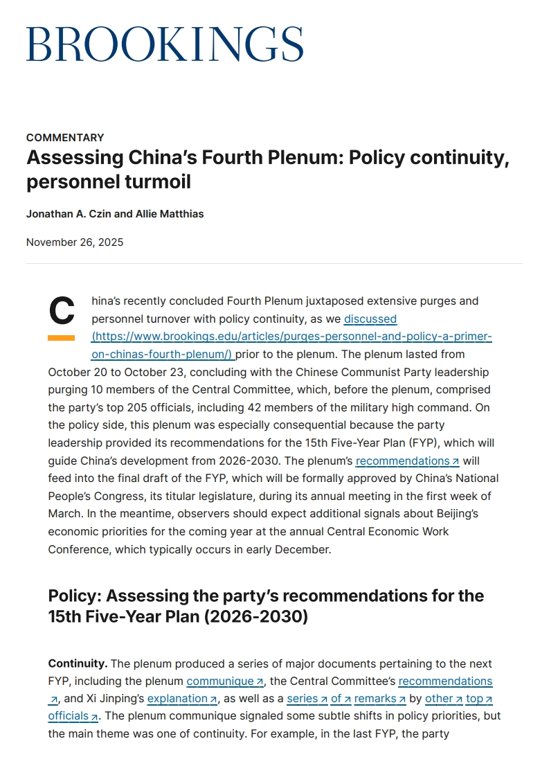 (중국의 제4차 전체회의 평가: 정책 연속성과 인사 교체의 소용돌이)