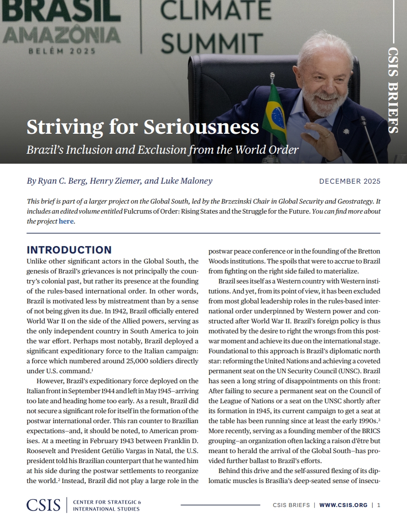 진지함을 향한 노력: 세계 질서에서 브라질의 포함과 배제