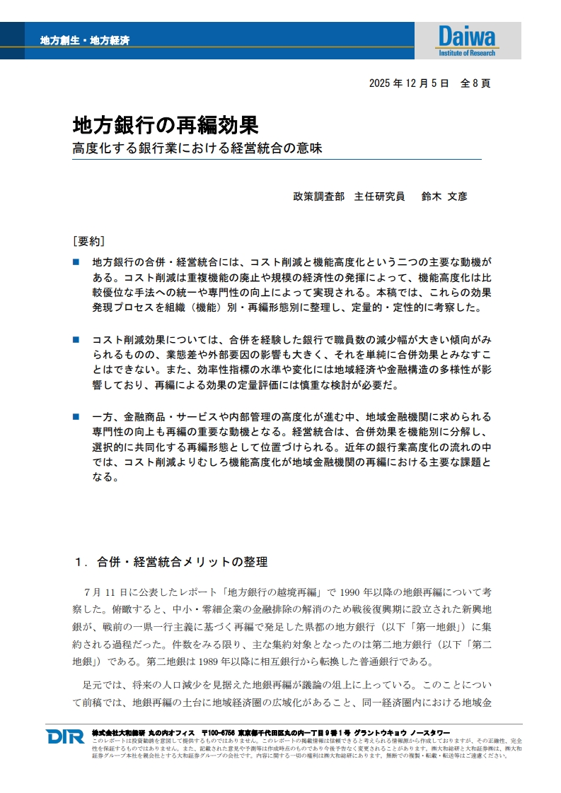 地方銀行の再編効果: 高度化する銀行業における経営統合の意味