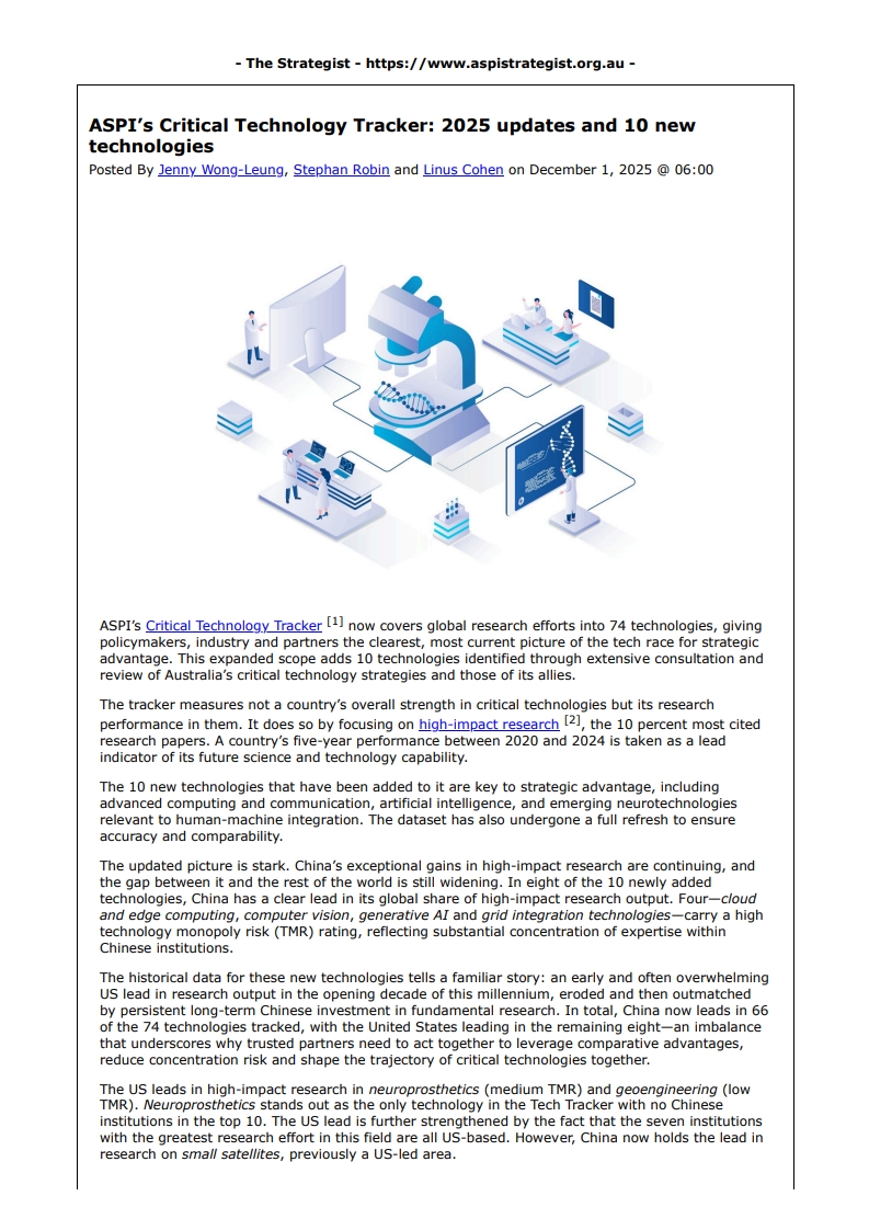ASPI’s Critical Technology Tracker: 2025 updates and 10 new technologies